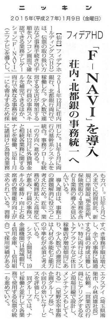 フィデアホールディングス様『F-NAVI導入』荘内・北都銀の事務統一へ