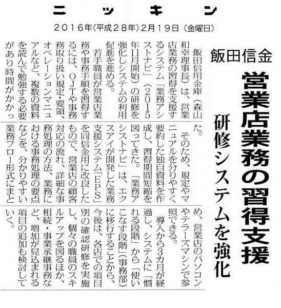 飯田信用金庫様『営業店業務の習得支援』研修システムを強化